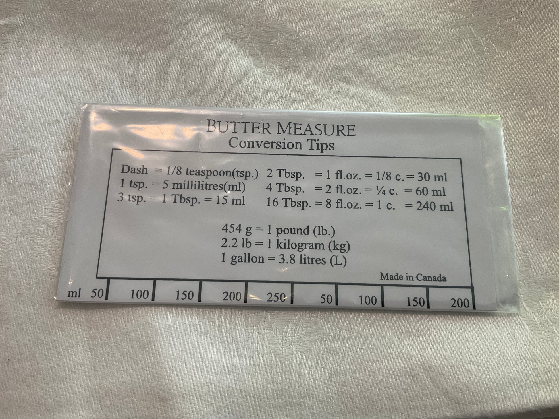 The bakers butter ruler from Fox Run is an indispensable tool for measuring butter. The butter ruler is extremely easy to use and helps you cut the appropriate amount of butter every time. Made in Canada.