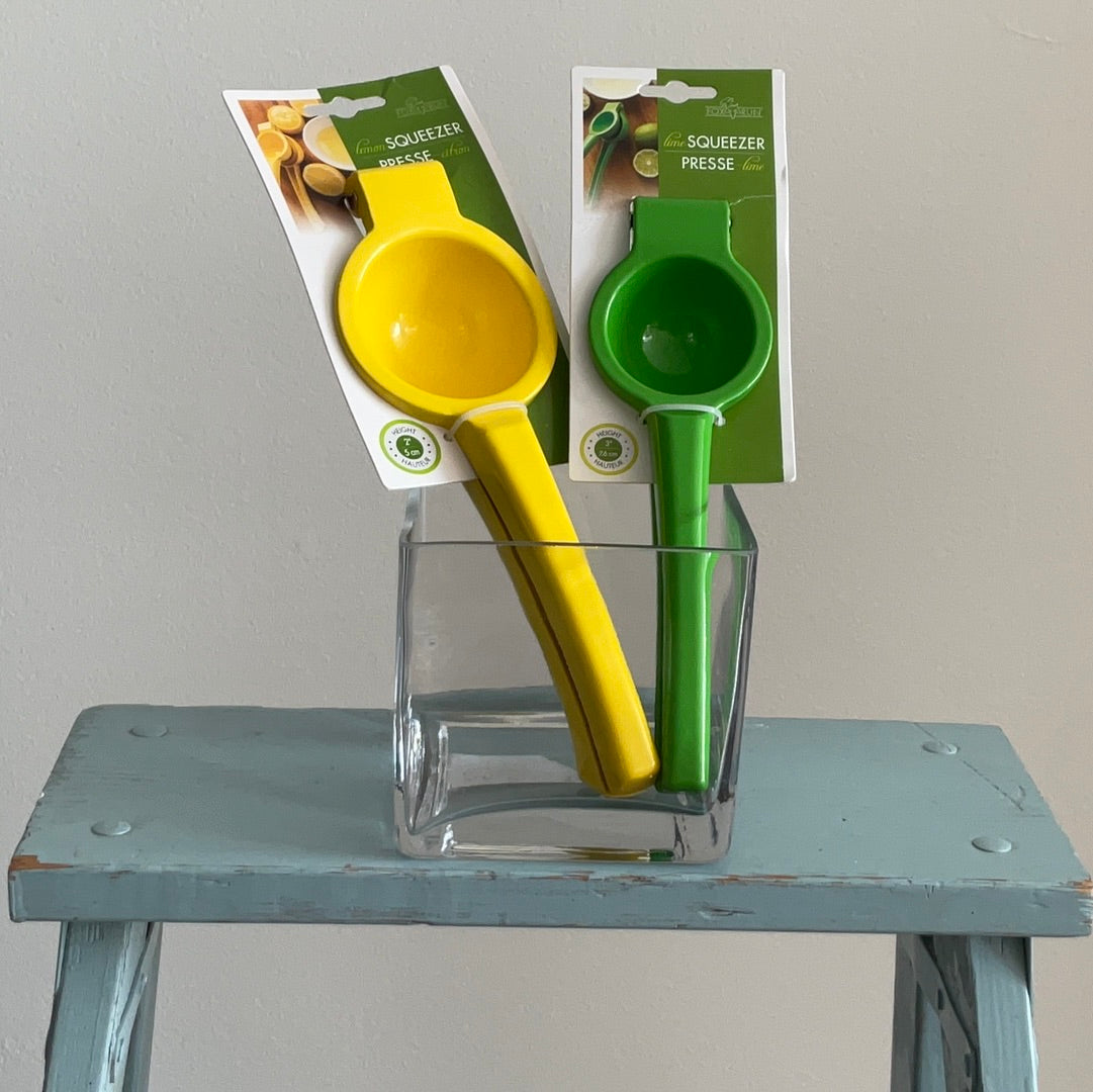 These powder coated aluminum squeezers are a great way to juice your lemons and limes! These tools juice easily without seeds or pulp, and the coating won’t rust or react to the citrus juices. Perfect for cocktails, home made lemonade, or that barbecue marinade you’re making!