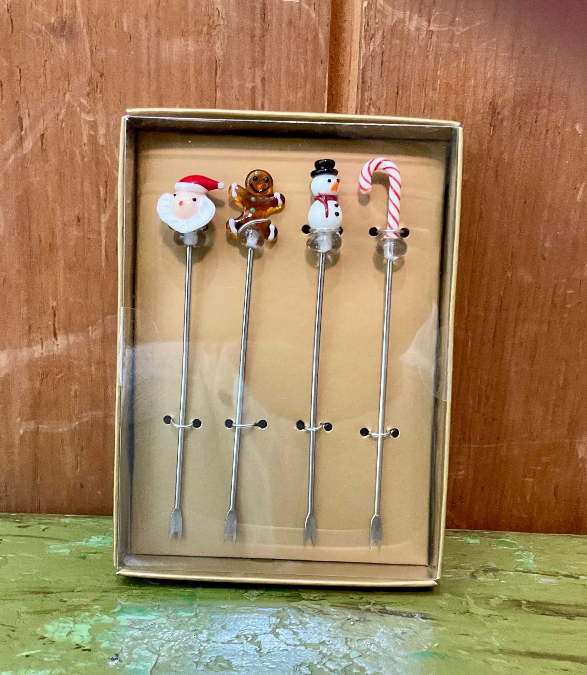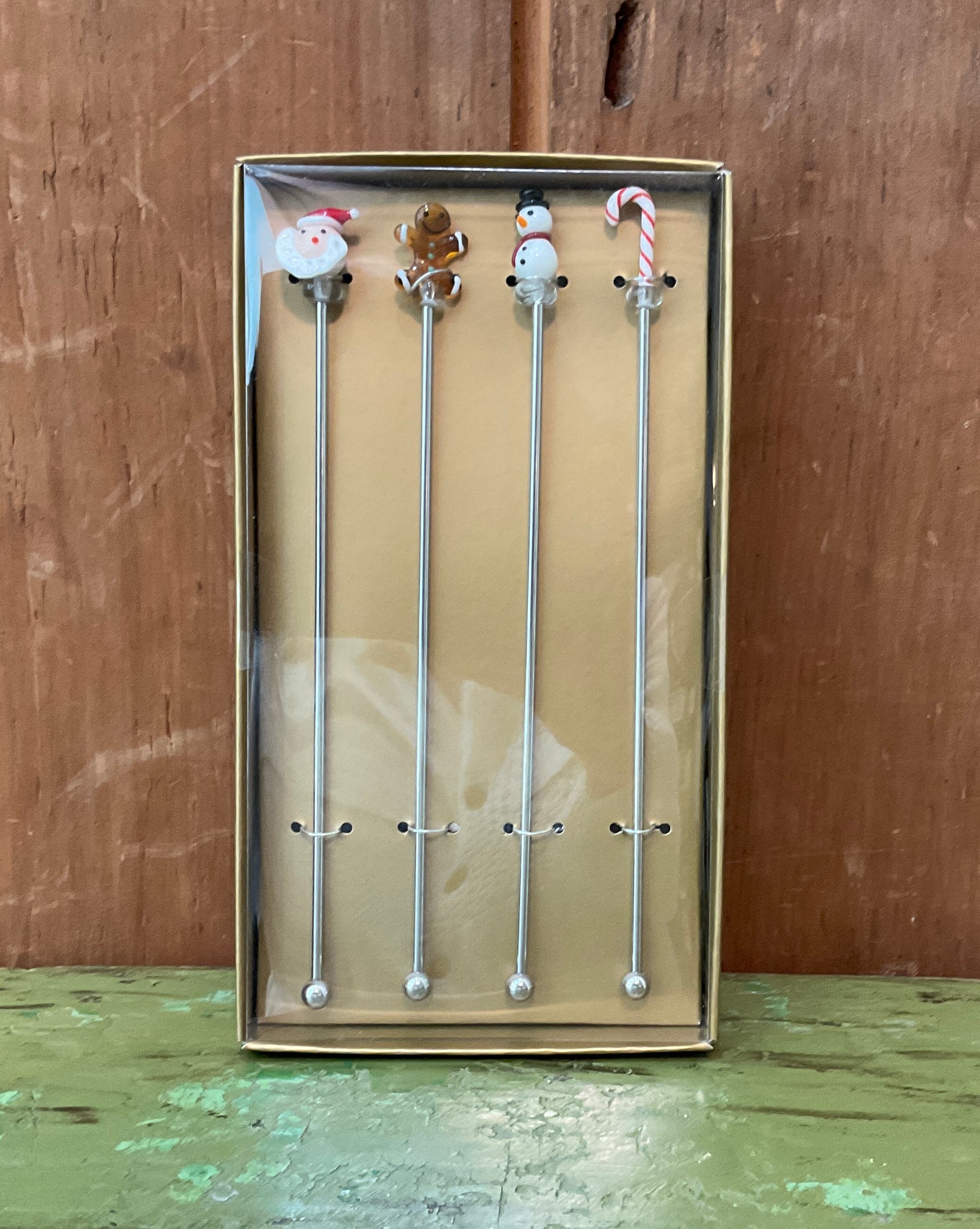 Add some festive flair to your holiday cocktails with this Set of 4 Holiday Icon Swizzle Sticks or Cocktail Picks, Santa Face cocktail picks or Snowman Cocktail picks. Crafted out of glass and stainless steel, these simple picks are accented with playful holiday designs to help make all your celebrations more festive and stylish.