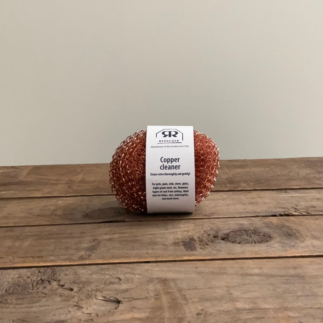 Removes all forms of burnt residue from your pots, pans, and stoves. Woven copper fiber. Removes all kinds of burnt residue from pots pans and stoves. Also ideal for all shiny parts of bicycles and motorcycles, as well as for glass and chrome parts and aluminium rims on cars. Because copper is a soft metal that is non abrasive, when used in wet condition it will leave no scratches on enamel and ceramic cooktops and will give your sink a high sheen. Machine washable up to 140 degrees fahrenheit, use with water.