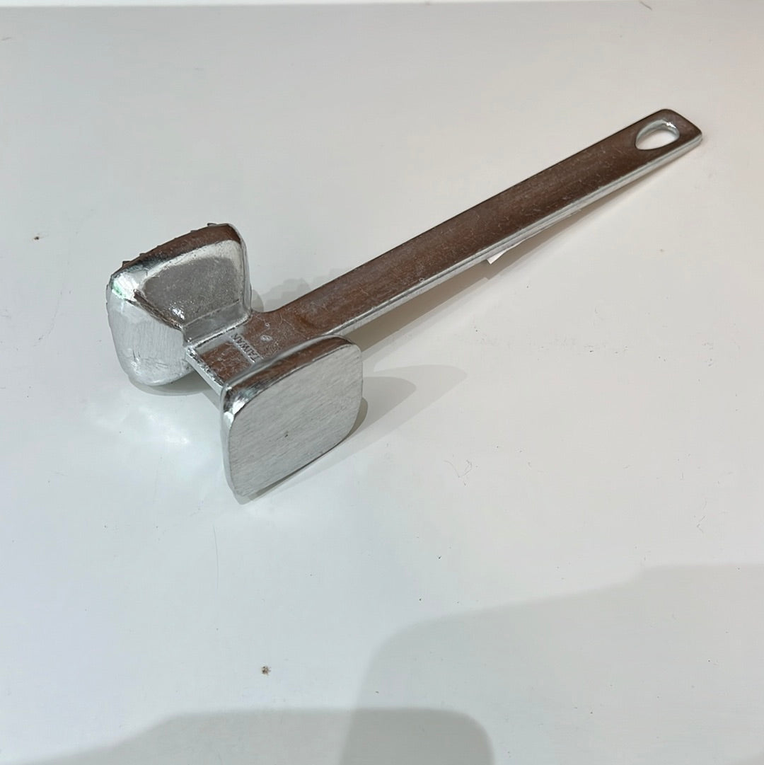 - Constructed of strong, durable aluminum. Features flat and raised surface for pounding and tenderizing all types and cuts of meat. Weight of 15-ounces, easy to use and won't strain your arms. Hand wash only