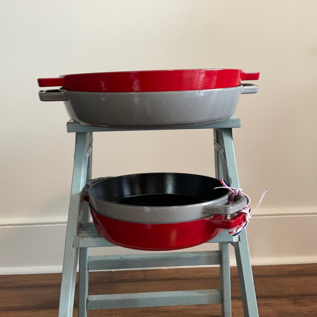 The Staub fry pan browns foods beautifully, be it chicken breasts, potatoes, or bacon. The enameled black matte interior imparts texture, promoting exceptional browning. Cast iron offers steady, even heat distribution, so the temperature of the pan won't drop as you cook. Low, curved sides make it easy to flip the food, which releases easily. With exceptional durability, it is perfect for day-to-day use in both gourmet home kitchens and prestigious restaurants around the world. Built to last a lifetime, these heirloom pieces can be passed from generation to generation.