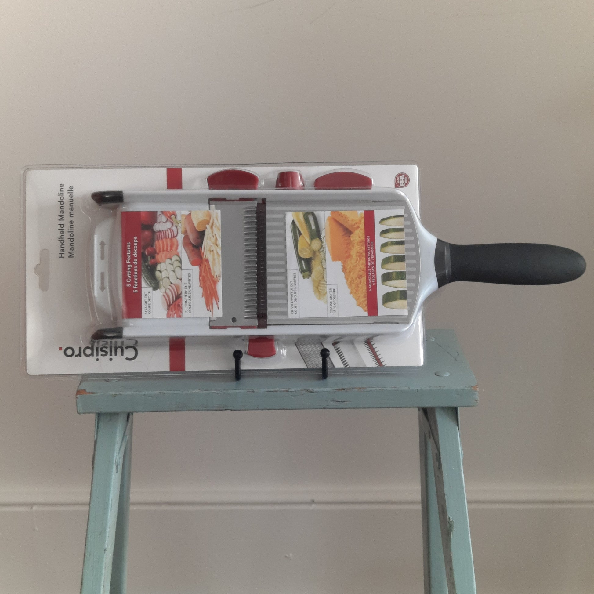 Winner of “Excellence in Housewares” award, the Cuisipro Mandoline features Surface Glide Technology™ with all the features of a full-sized mandoline in one compact body. Comes with six adjustable thickness settings, three interchangeable blades for slicing, crinkle and waffle cutting, dicing and julienning.