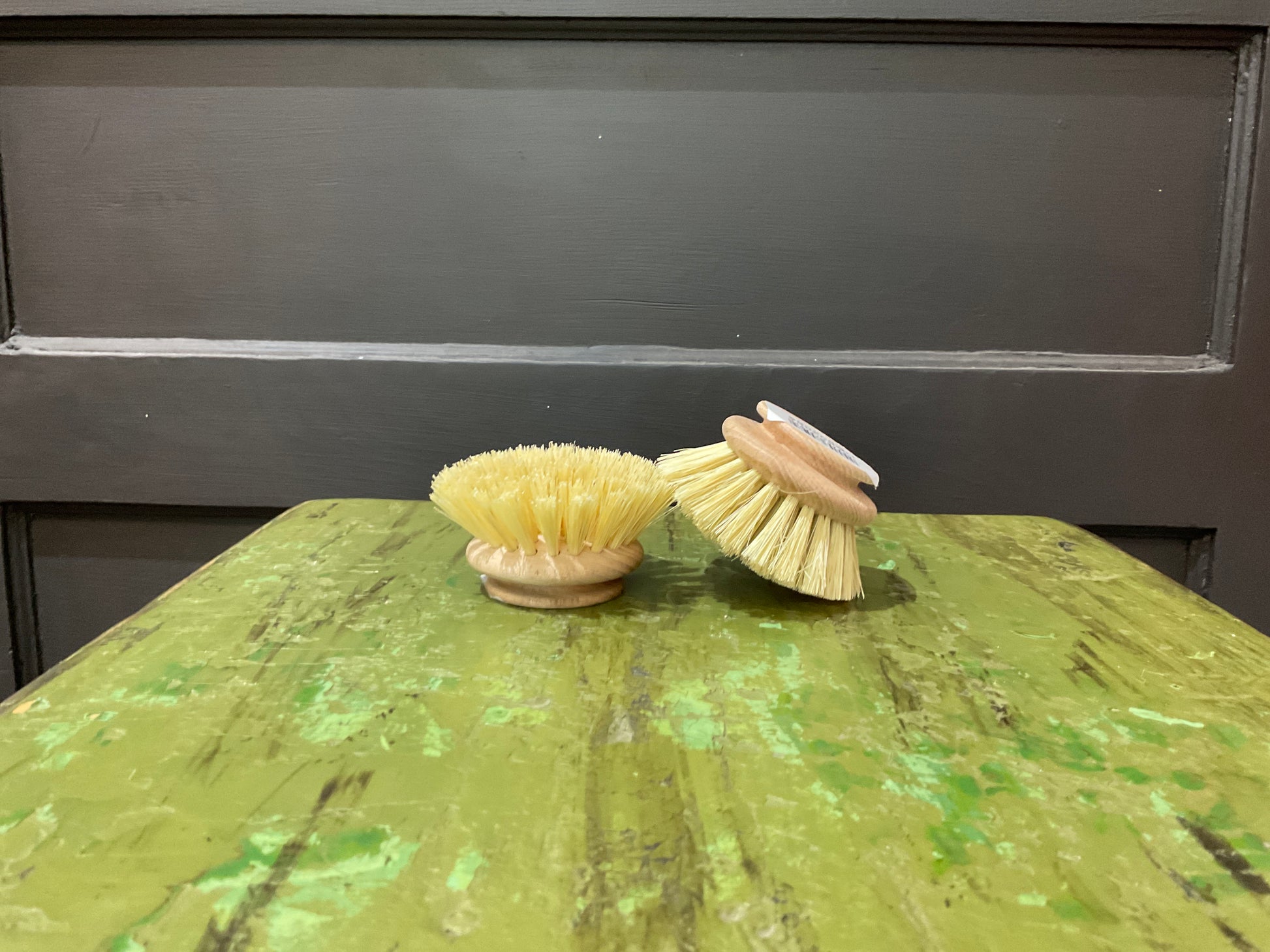- A plastic free wooden dish brush head, with plant-based bristles. This can be used as a replacement head for our wooden dish brush or can be use as is without the use of a handle. This brush head is fully biodegradable and made from vegan and sustainable materials. These bristles on this brush are plant-based and 100% biodegradable. Handmade in Germany by Haug Bursten, that has been making brushes for decades.
