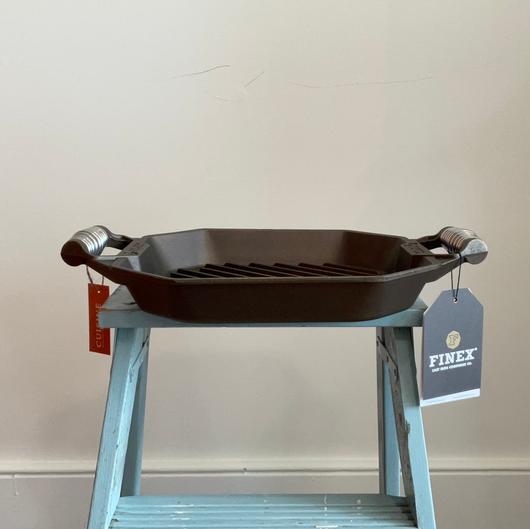 Perfect cast iron grilling results—indoors and out. Best used with any heat source. True BBQ-width grill ribs give you the best cross-hatch grill marks whether on the stove, grill or over the coals. Great for steaks, chops and salmon—it was made for the reverse seared steak technique.