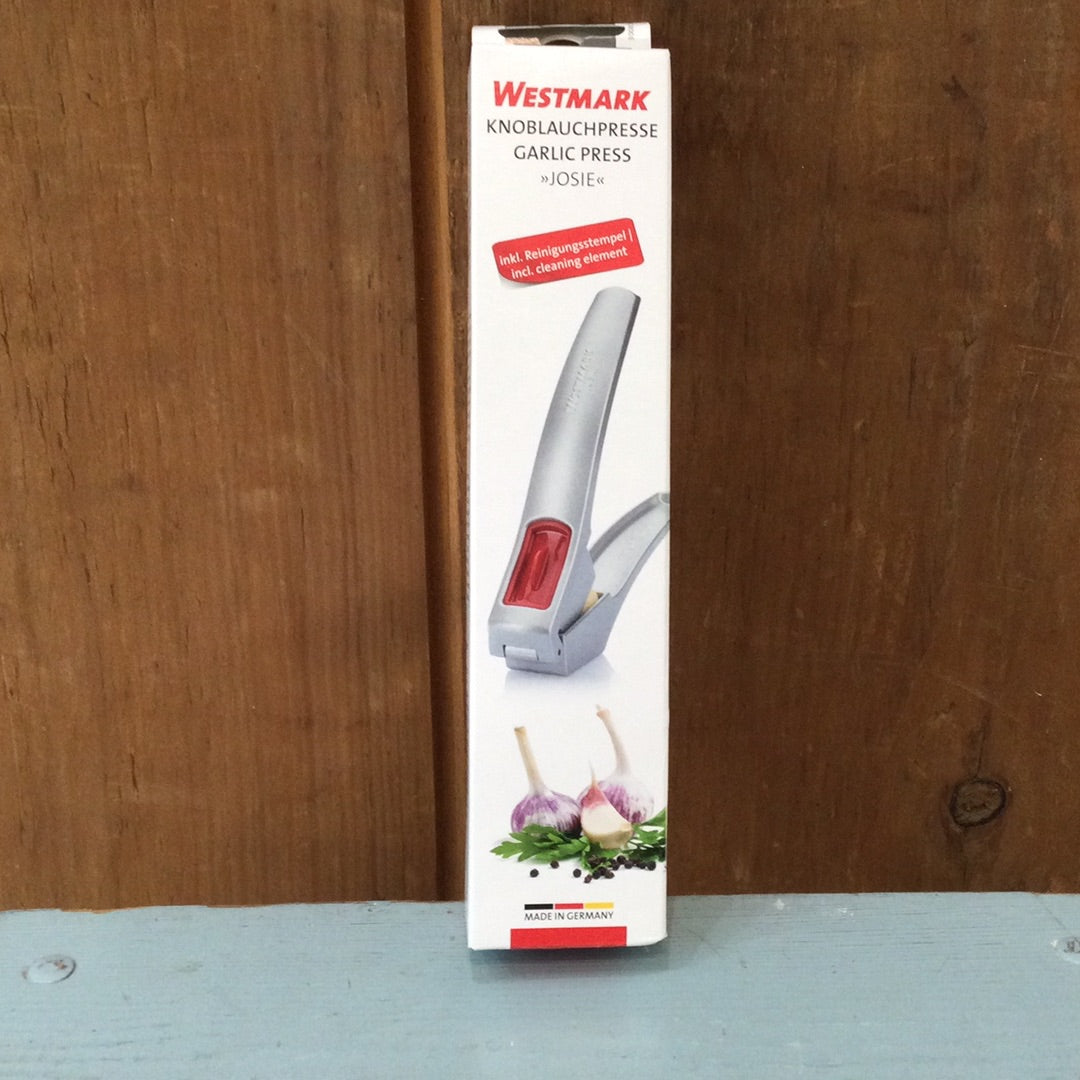 Westmark’s Garlic Press has a large chamber that allows for several cloves to be pressed at the same time. The cleaning brush is stored in handle. Made of food safe cast aluminium coating.