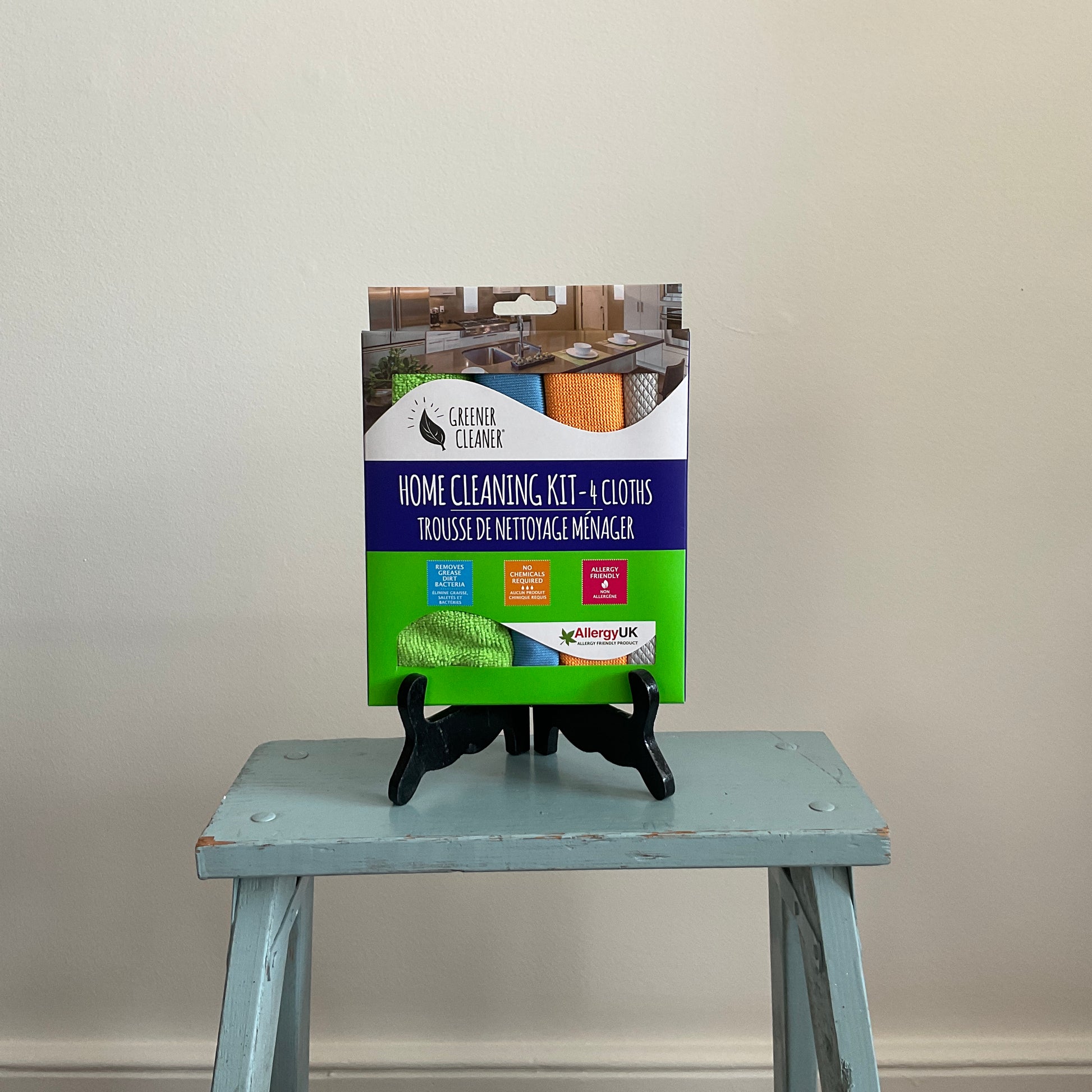 Home Cleaning Kit - 4 Cloths for all around the home. Removes grease, dirt and bacteria on several surfaces including windows, glass, stainless steel. Highly absorbent and machine washable.