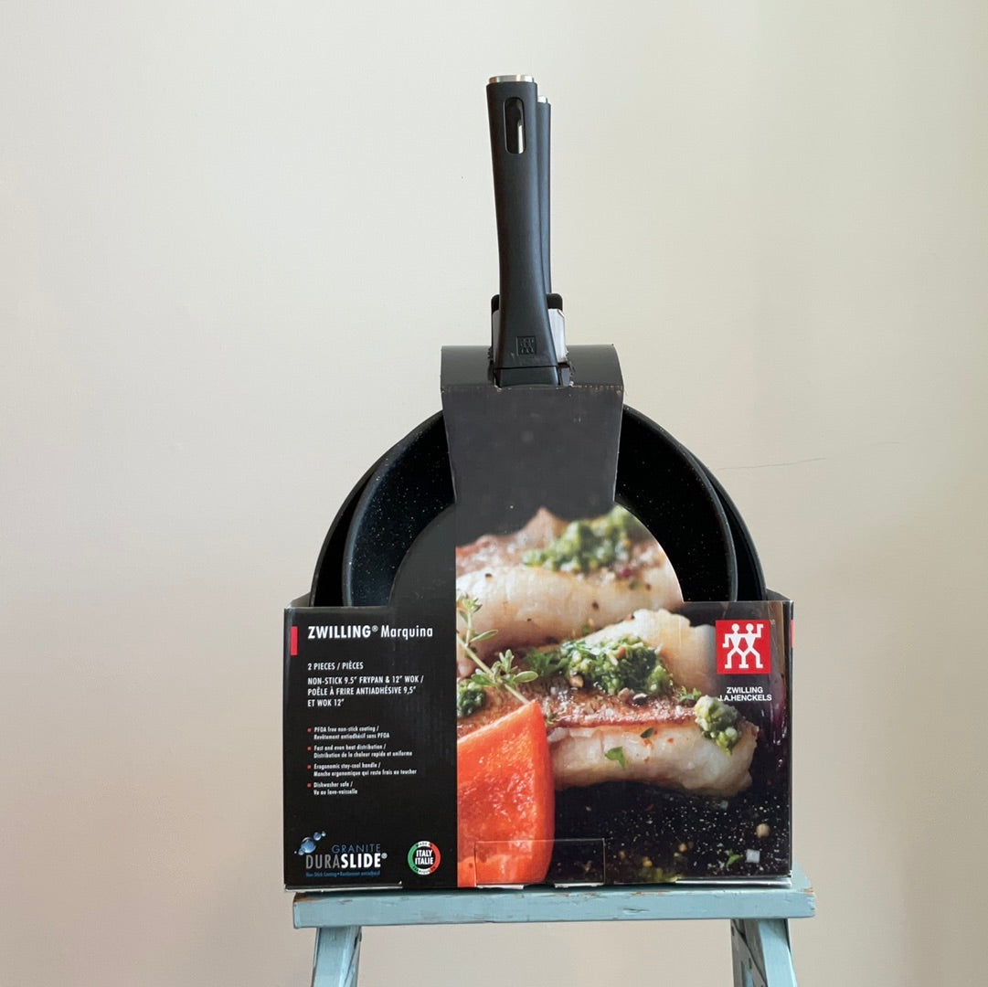 Prepare eggs, pancakes, paella and stir fries with this 2 pack frying pan set from the ZWILLING. The special design by Studio Thun from Italy makes this frying pan a visual delight. The Duraslide Granite non-stick coating offers 100% improved wear resistance compared with conventional non-stick coatings. The pan's solid forged aluminium core ensures even heat distribution.
