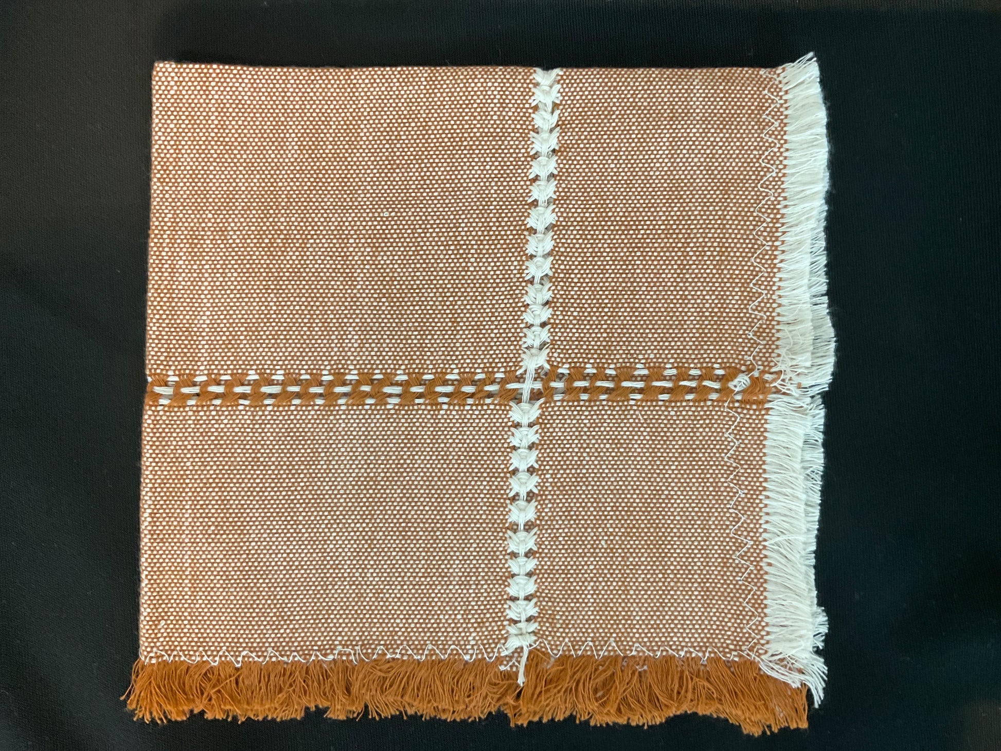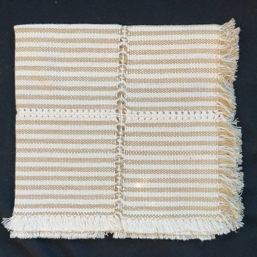 These 100% cotton napkins are handwoven on pedal looms by women artisans from Michoacán, whose mothers, grandmothers and entire families have been carrying the tradition from generation to generation. They have a lovely lace edge and hand-knotted fringe trim. They are large enough to be used as placemats as well. To preserve the beauty of these pieces, wash by hand and hang dry.