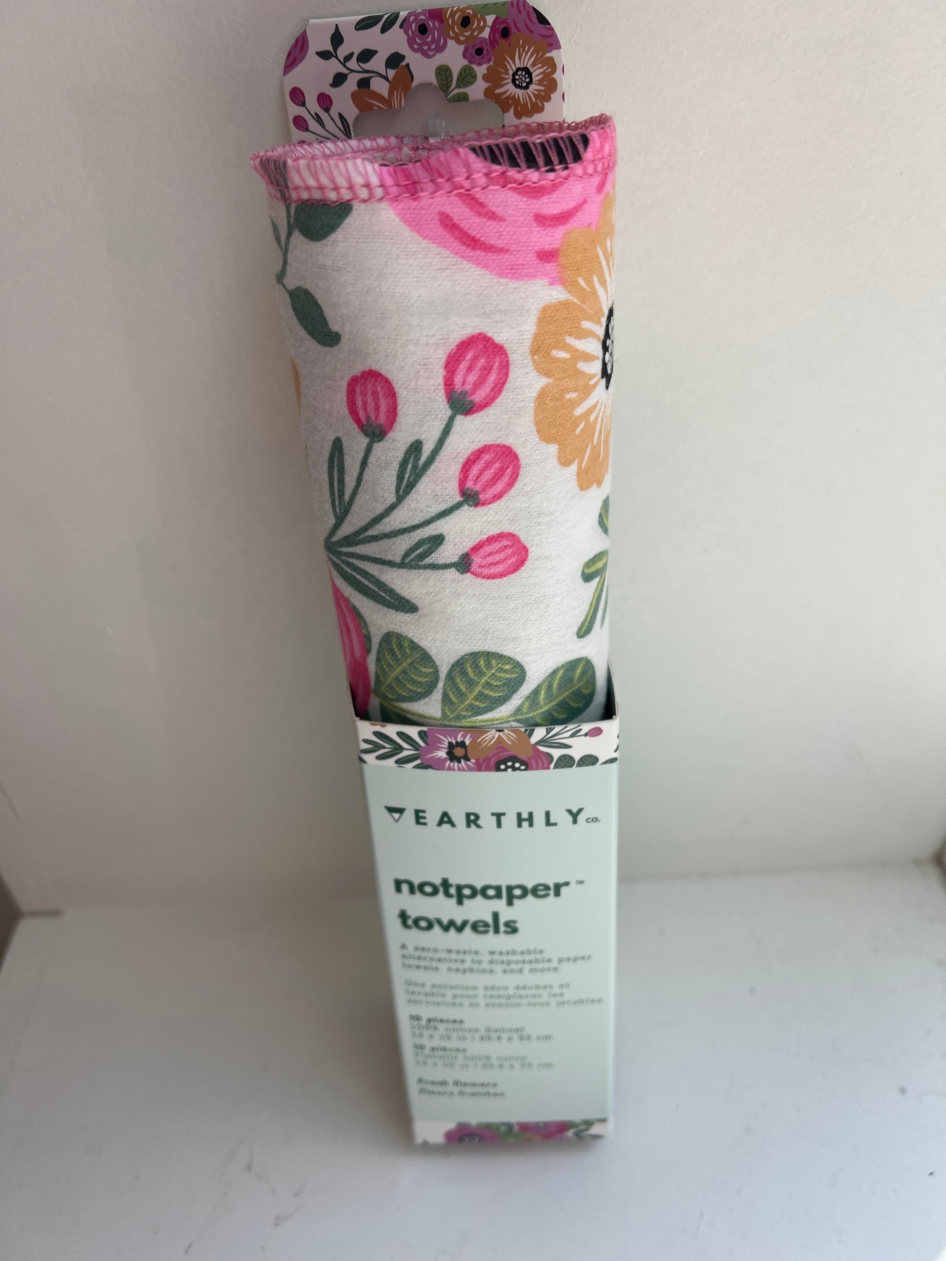 Earthly Co. A zero waste, washable alternative to disposable paper towels, napkins & more. 13 x 10” 10 pieces 100% flannel cotton. Designed in Canada