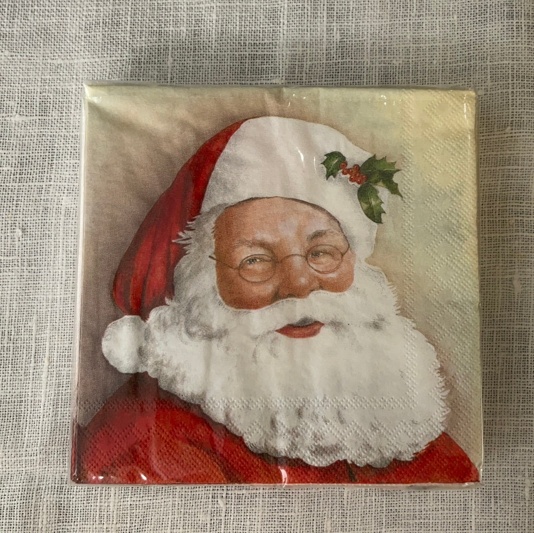 Paper serviettes. Large luncheon Santa & Small cocktail Santa. Large luncheon We Care collection.