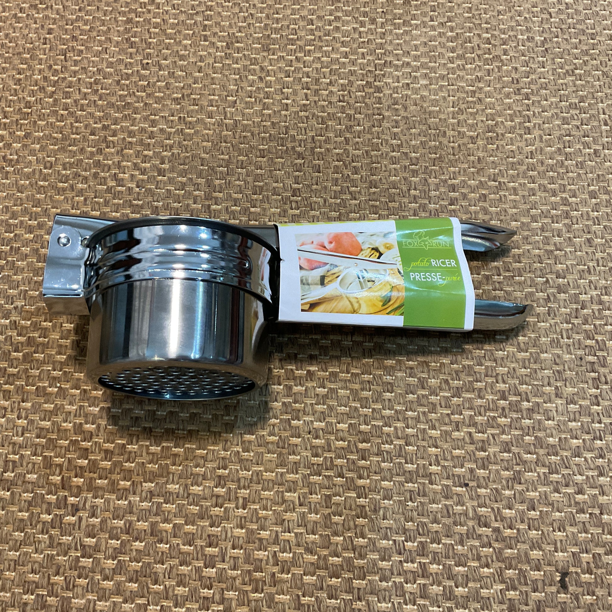 Chromed steel. Dishwasher safe. Fine and course textures.