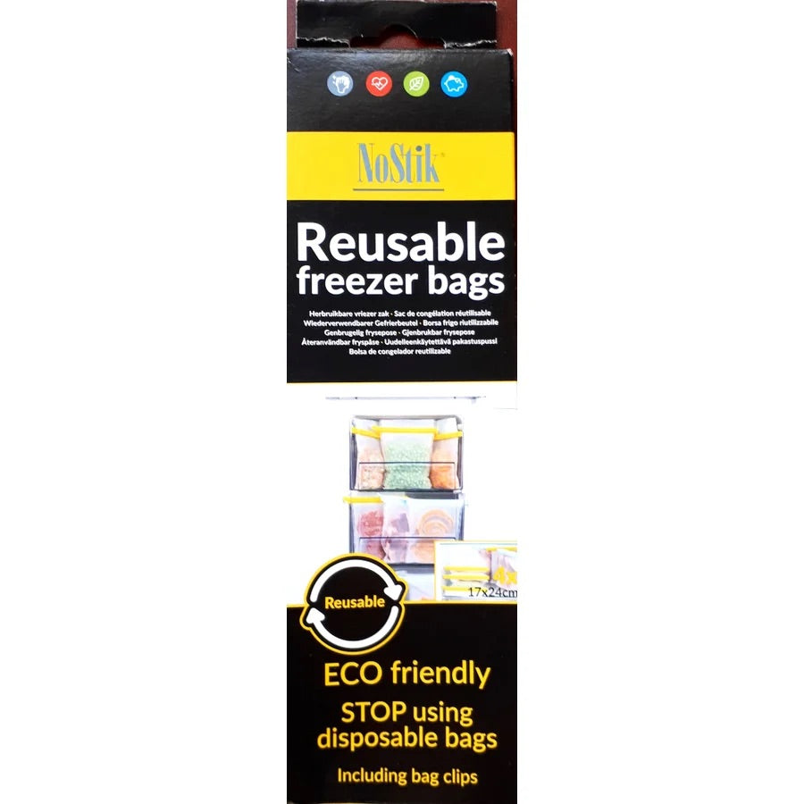 This set of 4 Reusable Freezer Bags reduce the need for single use plastic and are freezer safe up to -72°C. Each bag includes a bag clip to ensure a tight fit. Non toxic, BPA free, Phthalate free, Made in Belgium, Reusable, Non-stick, Easy to clean.