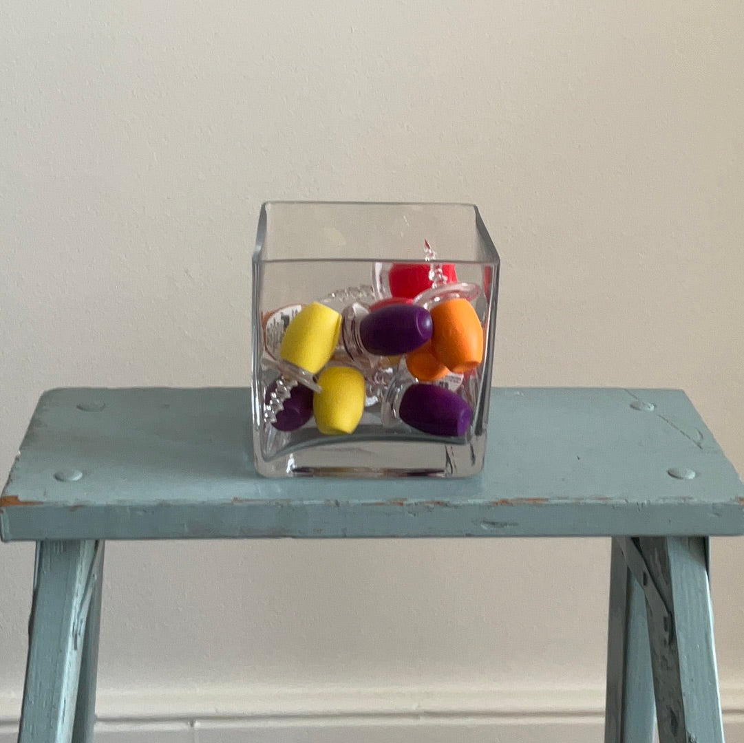 These colourful screw-in corn holders have threaded prongs to screw easily and securely into corn cobs. They have a soft grip for easy handling, and are heat resistant: boilable, microwaveable, and dishwasher safe!