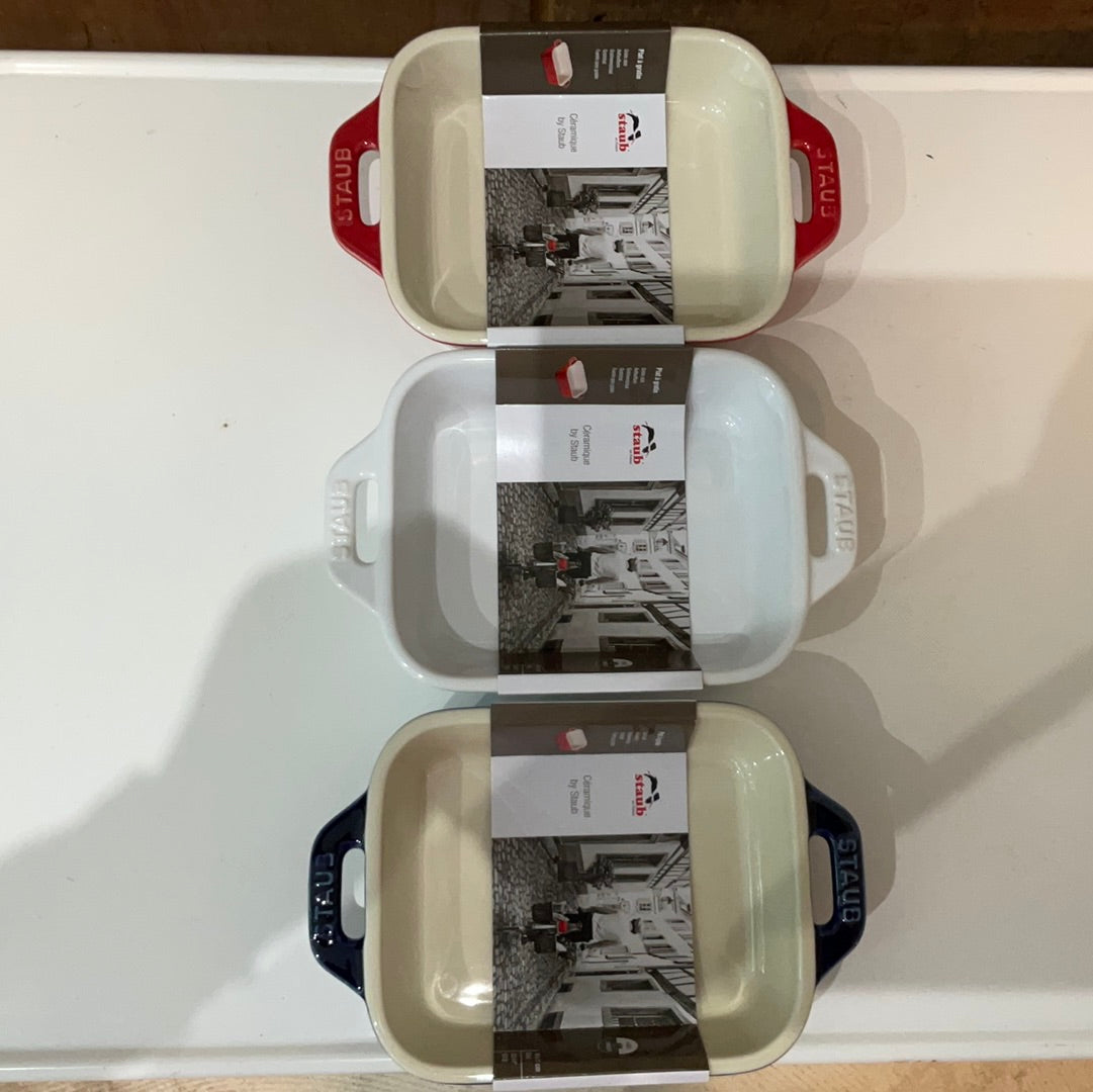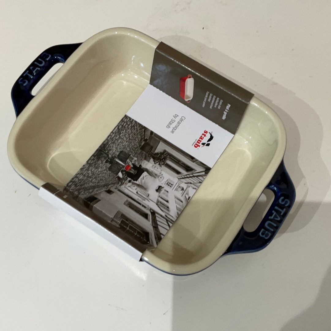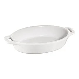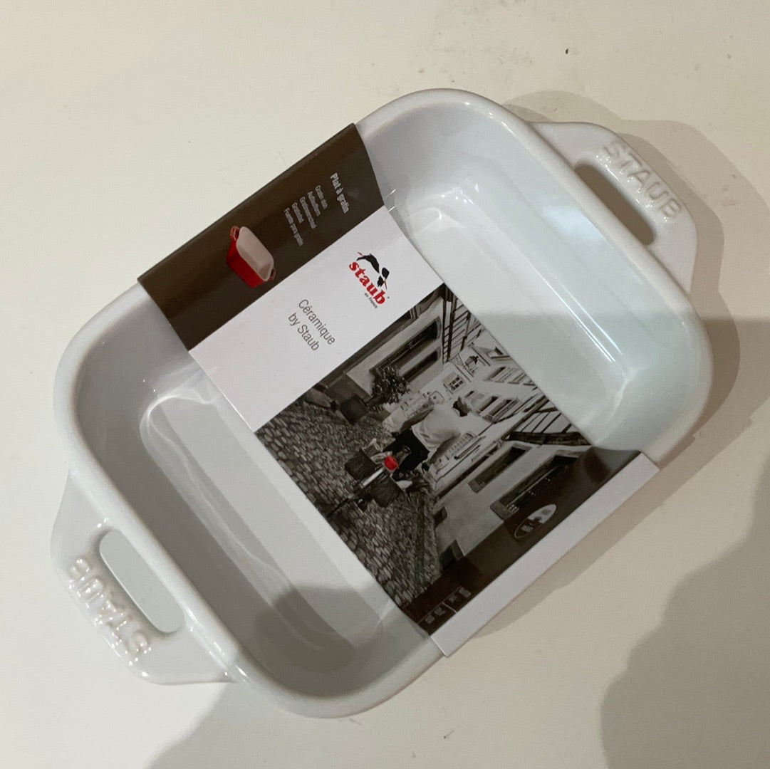 This rectangular Staub gratin dish can be used to cook a variety of different dishes. Although ideal for gratins and desserts, it can also easily be used to bake cakes. Measuring 27 cm x 20 cm, it is also perfect for making a meal for the entire family. Its elegant design in white also makes this item perfect for serving up dishes at the table. The surfaces of the dish are also easy to clean. Impress your guests with creative meals cooked up in this Staub Ceramics gratin dish.