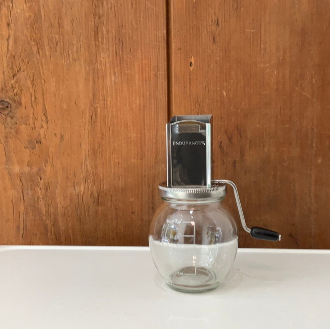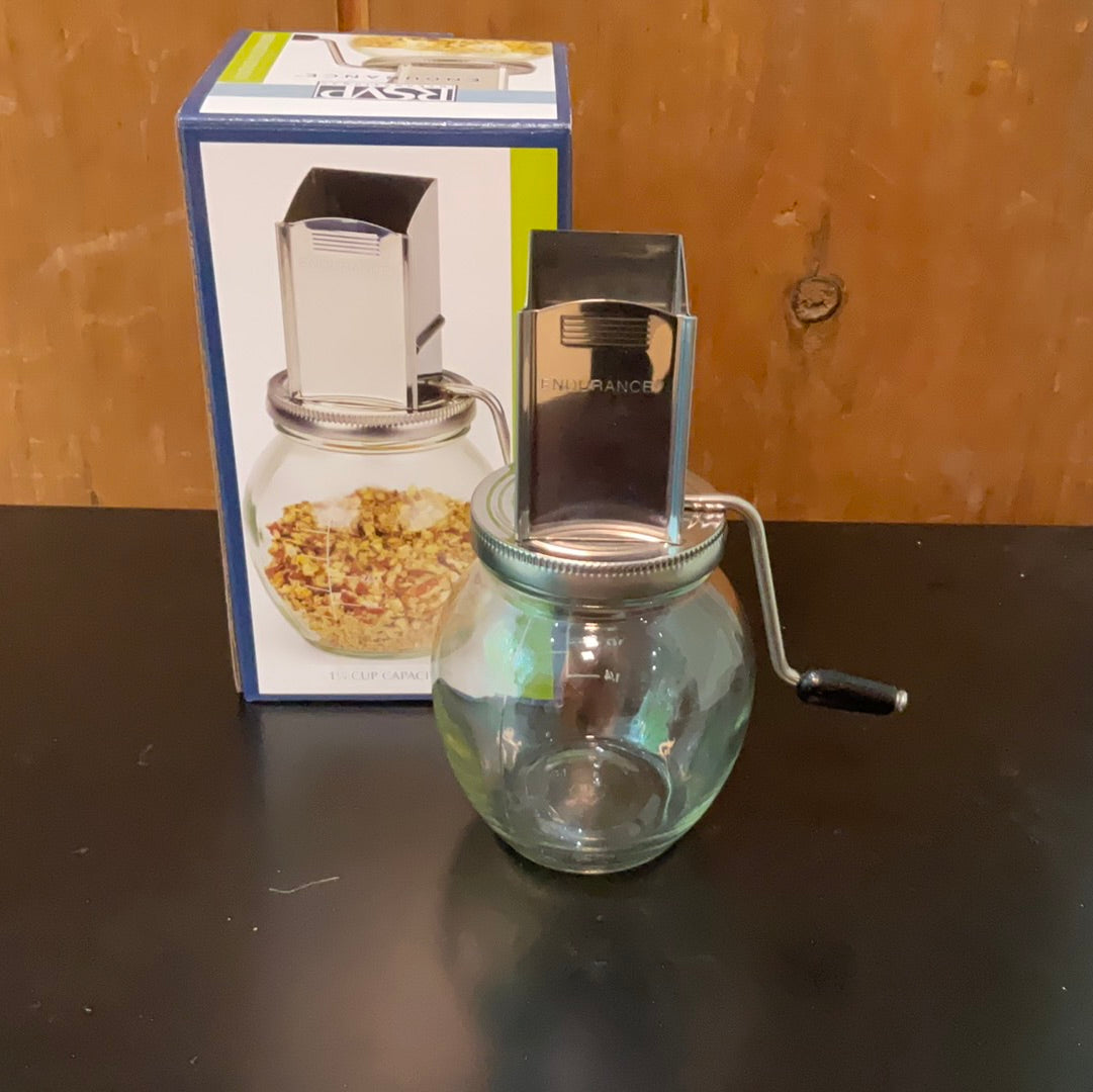 - Vintage nut chopper jar dimensions - 3.5" D. x 5" W. including handle x. 6.5" H.