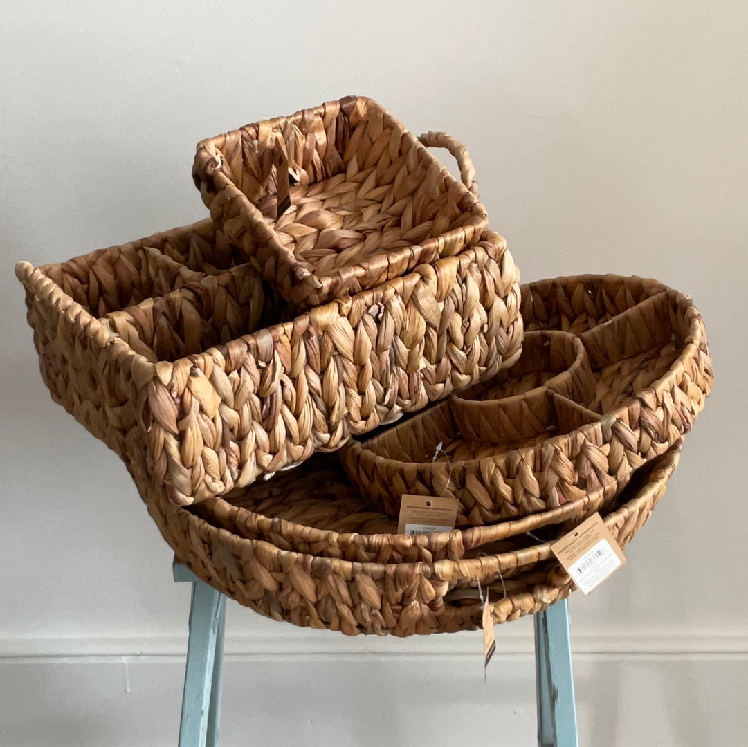 Handwoven natural trays. Perfect for all seasons, these handwoven natural accessories add warmth and a rustic and organic feel. A perfect chic finishing touch, whether for entertaining or every day use.