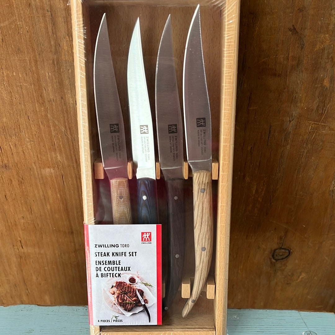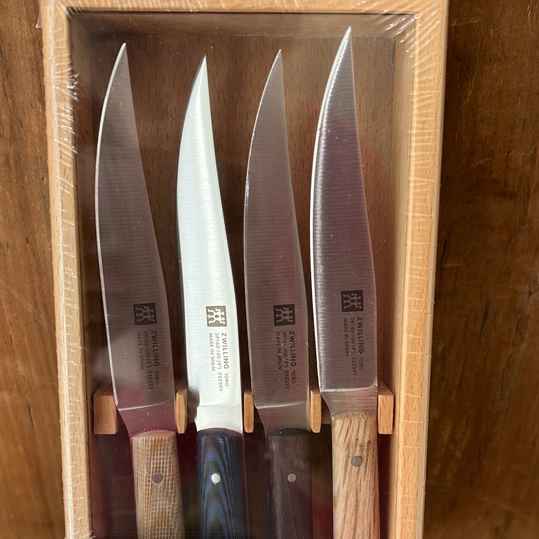 One-piece precision stamped blades made of Nitrum steel for effortless slicing and lasting sharpness. Multi-colour ergonomic handles made from Micarta, Holm Oak or Palisander wood accented with stainless steel rivets.
